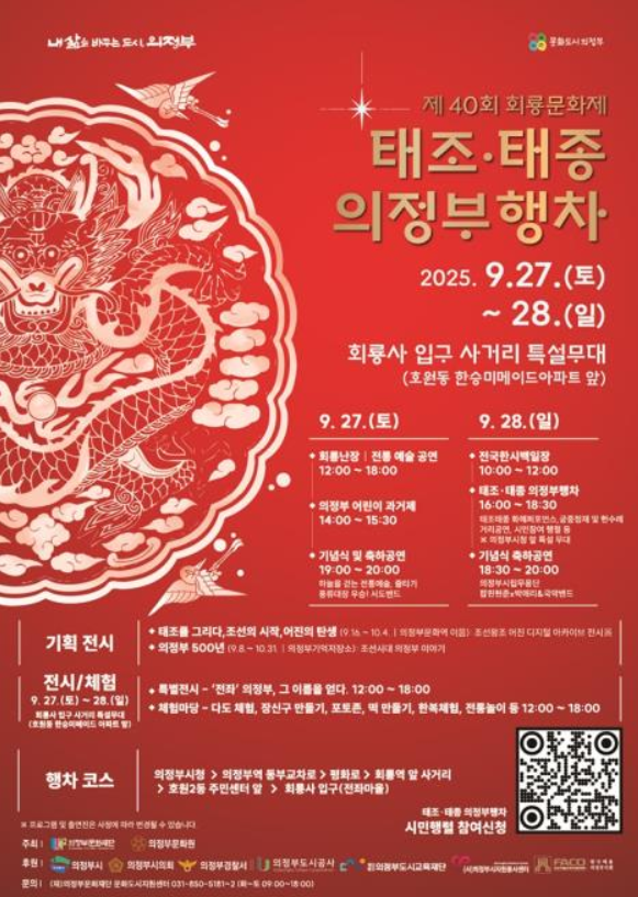 경기 의정부시가 오는 9월 27일부터 28일까지 호원동 회룡사 입구 사거리 일대에서 ‘제40회 회룡문화제’를 개최합니다.