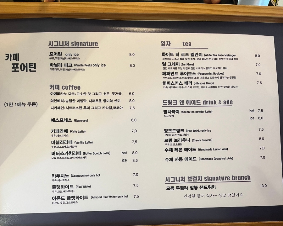 시그니처 메뉴 포어틴이에요