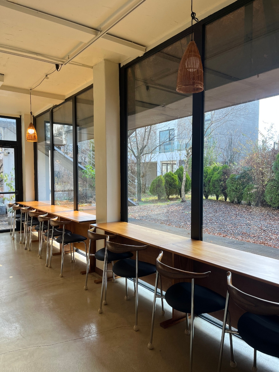 안쪽 창가 쪽에 앉으면 작은 정원이 있어요