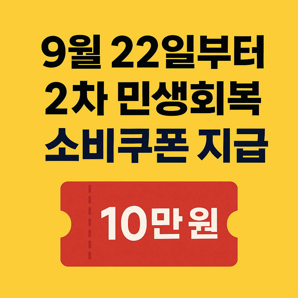 정부가 오는 9월 22일부터 전국민의 90%를 대상으로 1인당 10만 원씩 지급하는 2차 민생회복 소비쿠폰 정책을 발표했습니다.